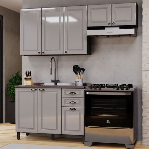 O(a) Cozinha Compacta Firenze 8 Portas 2 Gavetas 6171.160 Cinza/Titânio - Indékes é produzido em MDP na escala de brilho Fosco, e possui um grau de dificuldade de montagem: Médio.