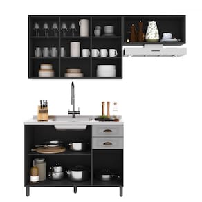 - Acompanha: Cozinha Compacta, Kit Ferragens, Manual de Montagem