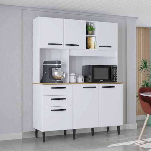 Detalhes Funcionais: Portas equipadas com dobradicas metalicas para um uso prolongado e eficiente, e Puxadores de Plastico modernos e ergonomicos. Transforme sua cozinha em um ambiente mais organizado, funcional e com o toque de qualidade que so a Poquema oferece!