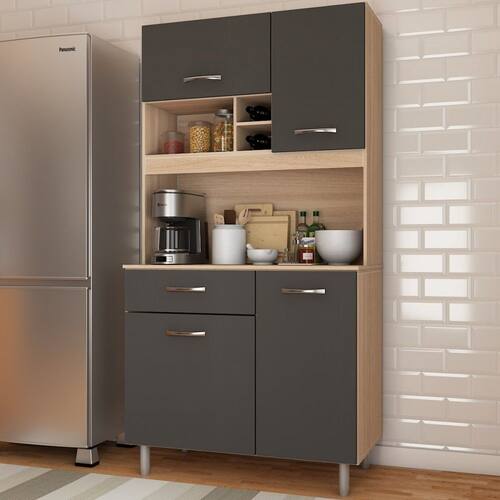 O(a) Cozinha Compacta Glória 4 Portas 1 Gaveta Freijó/Grafite - Loja é produzido em MDP na escala de brilho Brilho, Fosca com Textura e Fosco, e possui um grau de dificuldade de montagem: Médio.