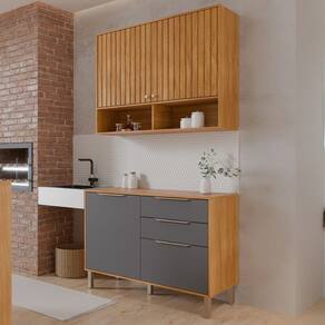 O(a) Cozinha Compacta Helena 4 Portas 2 Gavetas Ripado Cinamomo/Titanium - Pnr Móveis é produzido em MDF na escala de brilho Fosco, e possui um grau de dificuldade de montagem: Médio.