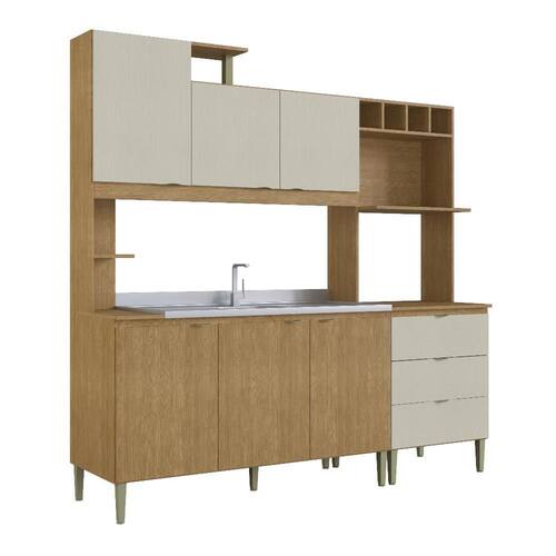 Cozinha Compacta, Isa Móveis Cadorin, Freijó/Chamois, MDP, Pintura UV, 6 Portas, 3 Gavetas, 2 Nichos para Forno, Prateleiras, Puxadores em Plástico, Pés, Durabilidade, Moderno, Funcionalidade, Armazenamento, Móveis, Decoração
