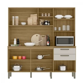 A Cozinha Kits Parana MEGA é produzida com madeira reconstituída - MDP, provindo de reservas florestais para este fim. Possui sete portas e 3 amplas gavetas. Os puxadores são em plástico resistente -poliestireno- com acabamento preto fosco. Nas portas as dobradiças são metálicas, e as corrediças telescópicas. Sete pés reguláveis em plástico resistente -polipropileno- garantem a estabilidade do produto, podendo-se fazer pequenos ajustes na montagem, para o produto se adequar em pisos irregulares. Conta com dois nichos para pequenos objetos, além de nicho para microondas. O espaço interno é bem dividido com a utilização de prateleiras, para melhor organizar os utensílios da cozinha. Acabamento em pintura texturizada sensível ao toque. Todos processos com secagem em luzes UV deixando o móvel mais bonito principalmente pelo que trazem modernidade a sua cozinha. A Cozinha MEGA é um produto que sabe aproveitar bem os espaço em cozinhas