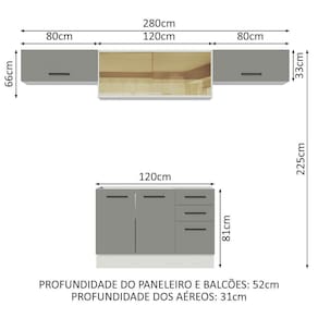 - 52 cm de profundidade no balcão e 31 cm nos aéreos