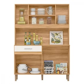 Características: - MDP de 12 e 15 mm - Pistão a gás na porta basculante - Puxador e pés em polipropileno - Corrediças metálicas - Acabamento/Pintura: Freijó Fosco/ Off Brilho - Dobradiças de aço - Suporte de peso gaveta 7 kg - Suporte de peso total 90 kg - Garantia: 03 meses