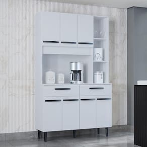 Detalhes de Qualidade que Fazem a Diferenca: A durabilidade e a praticidade sao as marcas desta cozinha. Cada componente foi escolhido para oferecer a melhor experiencia de uso a longo prazo: Estrutura Duravel: Fabricada em MDP de 12 mm, material leve e resistente, perfeito para suportar o peso de seus itens de cozinha. Maximo de Organizacao: Sao 7 Portas que garantem um acesso facil e separacao perfeita de mantimentos, loucas e eletroportateis. Movimento Suave: Todas as portas contam com dobradicas metalicas, que asseguram abertura e fechamento suaves e maior vida util ao movel. Gavetas Funcionais: As 02 Gavetas possuem corredicas metalicas, deslizando com leveza para que voce possa guardar seus talheres e panos de prato de forma organizada. Acabamento Brilhante e Resistente: O revestimento e feito em Pintura (Ultra Violeta), que nao so embeleza o movel com um acabamento liso e uniforme, mas tambem oferece protecao extra contra a umidade e desgastes do uso diario. Praticidade no Design: Equipada com Puxadores de Plastico de design moderno e Pes de Plastico resistentes que facilitam a limpeza do chao sob o movel.