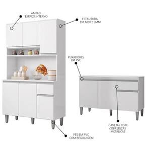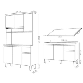 Conteúdo da Embalagem: 1 Armário, 1 Balcão, 1 Tampo.