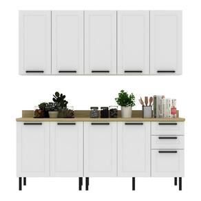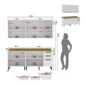 Conteúdo da Embalagem: 1 (um) Balcão com Tampo 120cm 1 (um) Balcão com Tampo 80cm 1 (um) Armário Aéreo 120cm 1 (um) Armário Aéreo 80cm Kit Ferragem Manual de Montagem