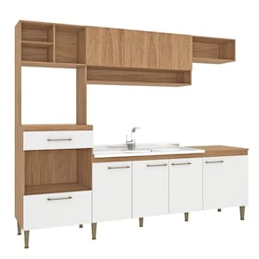 Cozinha Compacta Modulada 240x192cm 8 Portas 1 Gaveta Inova Mel/Branco