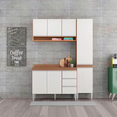 Cozinha Compacta Modulada com Balcão Paneleiro Sabrina 160x202cm 4 Peças MDP Branco Menu Móveis