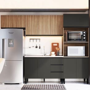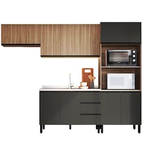 O(a) Cozinha Compacta Mogno 9 Portas 3 Gavetas Montana/Grafite - Quiditá Móveis é produzido em MDP na escala de brilho Semi-Brilho, e possui um grau de dificuldade de montagem: Médio.
