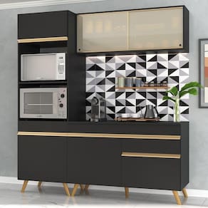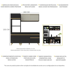 Produto Composto Por: 1 Armário Aéreo Com Portas de Vidro 120 Cm, 1 Balcão Com Tampo 120 Cm, 1 Armário Para Forno E. Microondas 62 Cm, Manual de Montagem E. Kit Ferragem.