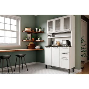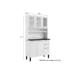 Kit de Cozinha Compacta Múltipla c/ 6 Portas (3 c/ Vidro) e 2 Gavetas 105cm Branco - Bertolini