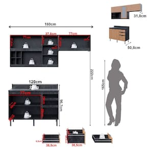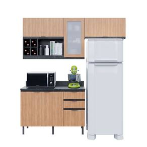 Cozinha Compacta Orquídea CZ1202 180cm 03 Peças 05 Portas 03 Gavetas com Divisor de Talheres Mármore Lunar Freijó Tecnomobili - Marrom