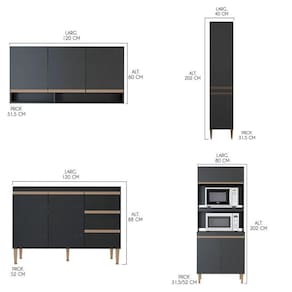 Cozinha Compacta Para Apartamento 240x202 4 Pçs Menu Móveis Preto A Cozinha Modulada Sabrina foi desenvolvida para atender todas as suas necessidades do dia a dia com um design moderno, cheio de atitude, personalidade, funcionalidade, beleza e versatilidade. A Cozinha preta e a tendencia do momento e foi arquitetada com modulos uteis que vao facilitar a sua rotina diaria nos preparos e armazenamento dos utensilios, mantendo sua cozinha sempre organizada.
