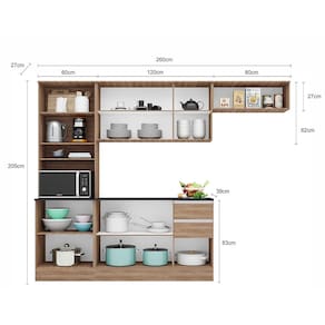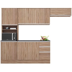 Cozinha Compacta Poliman Paris com 9 Portas, 2 Gavetas e 6 Prateleiras - 260cm de largura - Carvalho