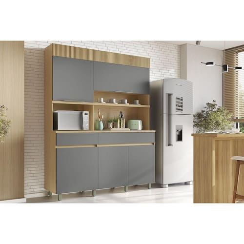 Cozinha Compacta Realeza c/ 5 Portas e 2 Gavetas 160cm Carvalho/Titânio - Nesher - Blush