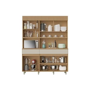 Kit de Cozinha Compacta Realeza c/ 5 Portas e 2 Gavetas 160cm Carvalho/Titânio - Nesher