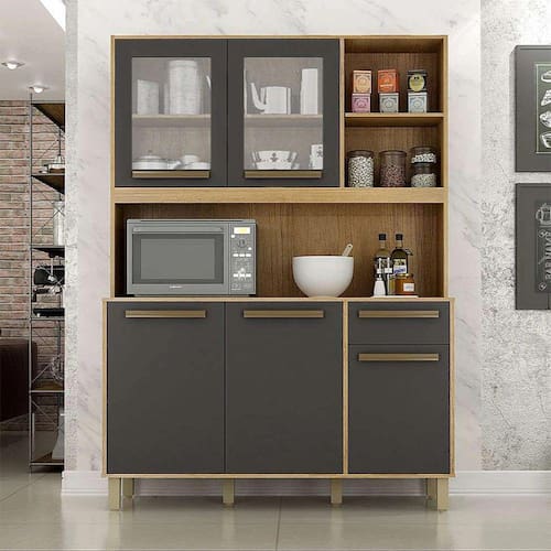 Que tal a Cozinha Compacta Rubi? Nada melhor do que ter uma cozinha funcional que facilite a rotina diária, não é verdade? É exatamente isso que a Cozinha Compacta Rubi vai levar para a sua casa! Dispondo de cinco portas, uma gaveta e nichos, ela é perfeita para acomodar os utensílios que você usa para preparar suas receitas especiais, bem como os potes de mantimentos e as louças. Além disso, o móvel também possui tampo fechado, que é ideal para acomodar algum eletrodoméstico pequeno, como micro-ondas, liquidificador e cafeteira, e até mesmo para servir de apoio na hora de picar e temperar os alimentos. Com design tradicional, a coloração sóbria e o acabamento amadeirado se juntam em um combo primoroso para embelezar o seu cantinho gourmet, e os vidros trazem todo um charme a mais. Só benefícios para o seu lar-style.
