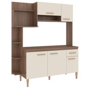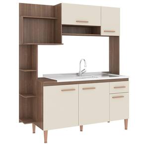 Características: Modelo: Sofia Referência de modelo:CC18 Matéria-prima: MDP 15 mm Revestimento: Finish Foil -FF- Acabamento: Fosco Tampo: Não acompanha tampo ou pia Portas: 5 Corrediças: Metálicas Dobradiças: Metálicas Puxadores: Plástico Prateleiras: 3 Gavetas: 1 Capacidade suportada:30 kg Pés:5 pés plásticos reguláveis
