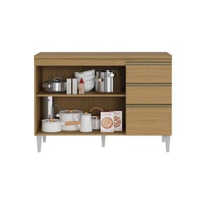 Cozinha com quatro peças, Armário com Nicho, Paneleiro Duplo , Armário Refrigerador e Balcão de Cozinha com tampo, 03 portas e 02 gavetas. Produzido em MDP de 15mm e 12mm de espessura, proporcionando resistência e durabilidade. Amplo espaço interno, garantindo maior firmeza ao móvel. Puxadores de PVC dando maior resistência. Dobradiças metálicas dando maior durabilidade e resistência ao abrir e fechar as portas. Acabamento em verniz texturizado fosco e verniz brilho nas portas, garantindo a conservação do móvel, além de manter a beleza constante oferece ao móvel, resistência e durabilidade prolongando a vida útil do produto.