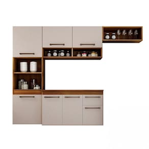 (Imagem ilustrativa). Acabamento da Prateleira: Pintura Escala de Brilho da Prateleira: Semi-Brilho Acabamento da Gaveta: Pintura Escala de Brilho da Gaveta: Brilhante Material do Puxador da Gaveta: ABS Acabamento da Porta: Pintura Escala de Brilho da Porta: Brilhante Material do Puxador da Porta: ABS Acompanha Tampo: Não Ambiente Principal: Cozinha Complexidade da Montagem: Alta: deve ser montado por um montador especializado Cor: Carvalho/Off White Cor do Produto: Carvalho/Off White Cor Flex: Não Cor Interna: Carvalho Cor Predominante: Marrom Escala de Brilho: Semi-Brilho Gaveta com Chave: Não Informações Complementares: Imagens meramente ilustrativas. Itens Inclusos: 1 Cozinha Compacta, Manual de Montagem e Kit Ferragens Manual de Montagem e Instalação: https://cdn2.madeiramadeira.com.br/atributo/chf/745612-13486-manual-cozinha-liz-chf.pdf Material da Gaveta: MDP Material da Porta: MDP Material da Prateleira: MDP Material do Fundo: HDF 3 mm Medida de cada item (A x L x P): Balcão: 51,5 x 90 x 35,5, Nicho: 21,5 x 60 x 29, Aéreo/Paneleiro: 150 x 135 x 29 Montagem Flex: Não Necessita Montagem: Sim O Balcão Acompanha Pia: Não Origem do Produto: Nacional Peso: 58,2 kg Peso Máximo por Gaveta: 10 kg Peso Máximo por Prateleira: 5 Possui Pés: Suspenso Possui Portas: 06 Possui Prateleiras: 01 Possui recorte para Cooktop: Não Recomendações de Uso, Manutenção e Limpeza: Limpar com flanela limpa e seca. Não usar produtos abrasivos. Sistema de Montagem: Parafusos, cantoneiras e cavilhas Suporta Até (kg): 50 kg Tamanho: Tipo de Corrediça da Gaveta: Metálica Simples Tipo de Dobradiça da Porta: Metálica Tipo de Puxador da Gaveta: Externo Tipo de Puxador da Porta: Externo