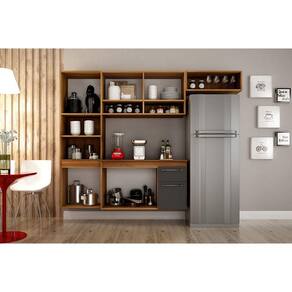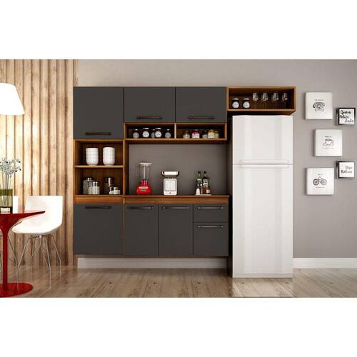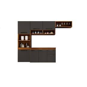 Cozinha Compacta Suspensa 6 Portas e 2 Gavetas - Liz--Carvalho/Grafite - CHF Móveis