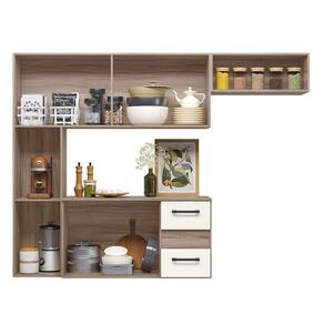 O Kit Cozinha Compacta Juliete, por ser suspensa, é uma ótima opção para quem não possui muito espaço e prefere organizar seus utensílios de cozinha de forma fácil e prática. Possui cores modernas e cheias de estilo, sendo composto por 1 balcão com tampo, 07 portas e 02 gavetas com corrediças metálicas, com estrutura reforçada em MDP, tornando mais resistente e duradouro" Acabamento da Prateleira: Pintura UV Escala de Brilho da Prateleira: Fosco Acabamento da Gaveta: Pintura UV Escala de Brilho da Gaveta: Semi-Brilho Material do Puxador da Gaveta: Plástico Acabamento da Porta: Pintura UV Escala de Brilho da Porta: Semi-Brilho Material do Puxador da Porta: Plástico Acompanha Tampo: Sim Ambiente Principal: Cozinha codigo_ean: 7909903338469 Complexidade da Montagem: Média: pode ser montado por mais de uma pessoa e/ou necessite de maior conhecimento para montagem Cor: Carvalho Marrom/Off White Cristal Cor do Produto: Carvalho Marrom/Off White Cristal Cor Interna: Carvalho Marrom Escala de Brilho: Semi-Brilho Espessura do Material da Estrutura: 12 mm Espessura do Tampo: 12 mm Gaveta com Chave: Não Itens Inclusos: 1 Cozinha Compacta, Manual de Montagem e Kit Ferragens Manual de Montagem e Instalação: https://product-hub-prd.madeiramadeira.com.br/855563/documents/5ec84fc6-97d9-4453-99a4-6a7acfdf0981esuspensaesquemademontagem.pdf Material da Dobradiça/Corrediça da Porta: Aço Material da Gaveta: MDP Material da Porta: MDP Material da Prateleira: MDP Material do Fundo: MDF Material do Tampo: MDP Necessita Montagem: Sim O Balcão Acompanha Pia: Não Origem do Produto: Nacional Peso: 43,7 kg Peso Máximo por Gaveta: 8 kg Peso Máximo por Prateleira: 8 kg Possui Pés: Não Possui Portas: Sim Possui Prateleiras: Sim Possui recorte para Cooktop: Não Produto Montado: Sim Recomendações de Uso, Manutenção e Limpeza: Limpar com flanela ou pano macio seco, não utilizar produtos abrasivos, desengordurantes, álcool Sistema de Montagem: Parafusos, pregos, puxador, cantoneira e etc... Suporta Até (kg): 8 kg Tamanho Indicado da Pia: Não Tipo de Corrediça da Gaveta: Metálica Simples Tipo de Dobradiça da Porta: Simples Tipo de Puxador da Gaveta: Externo Tipo de Puxador da Porta: Externo