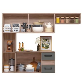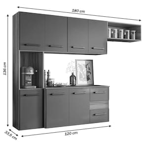 Cozinha Compacta Suspensa Juliete 7 Portas 2 Gavetas Nicioli Carvalho Nature/chumbo
