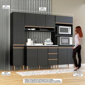 Balcao Pia para Cozinha Modulada Sabrina 120x52cm MDP Preto 0449 Menu Moveis