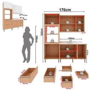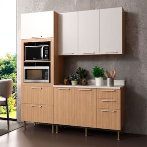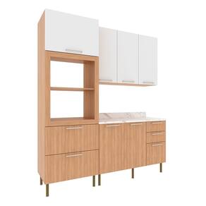 Cozinha Compacta Tulipa CZ1103 170cm 03 Peças 06 Portas e 05 Gavetas com Divisor de Talheres Freijó Mármore Branco Tecnomobili - Bege Médio