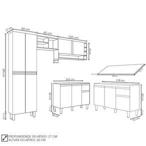 Conteúdo da Embalagem: 1 Balcão 120cm, 1 Balcão 105cm, 2 Armários Aéreos, 1 Paneleiro, 1 Tampo.