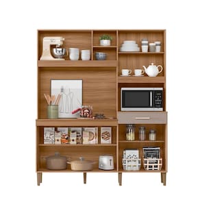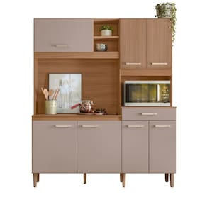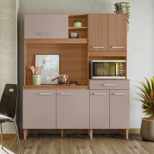 Características: Estrutura em MDP Acabamento de Pintura em UV 07 Portas, sendo 01 basculante Pistão a Gás 01 Gaveta com corrediças metálicas Espaço para forno elétrico ou microondas Prateleiras com amplo espaço Aplique decorativo ripado.