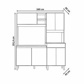 Dimensões: Altura: 191,4 cm Largura: 160 cm Profundidade: 43 cm