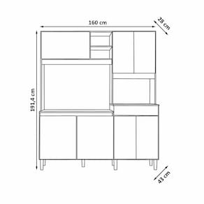Dimensões: Altura: 191,4 cm Largura: 160 cm Profundidade: 43 cm