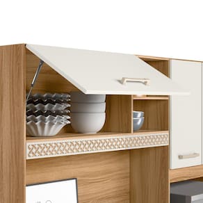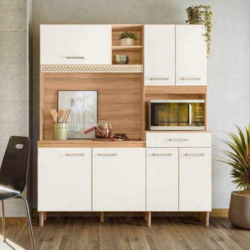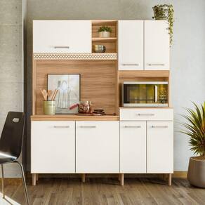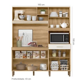 Características Estrutura em MDP de 15mm Pintura da estrutura em UV 06 Portas articuladas Dobradiças metálicas 01 Porta basculante Pistão à gás Prateleiras internas 01 Gaveta externa Corrediças metálicas Pés fixos Puxadores em polietileno Espaço para forno elétrico ou microondas Acompanha tampo em MDP NÃO ACOMPANHA CUBA PARA PIA.