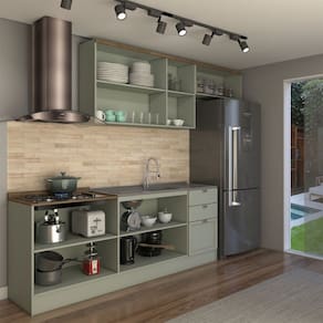 O(a) Cozinha Competa Omaha 8 Portas 3 Gavetas 100% Mdf Mint/Marrom Claro - Loja é produzido em 100% MDF na escala de brilho Fosco, e possui um grau de dificuldade de montagem: Médio.