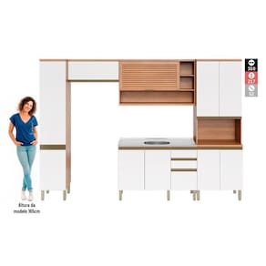 Medida de cada item (A x L x P): Paneleiro: 217 cm x 40 cm x 52 cm; Armário: 36 cm x 80 cm x 31 cm; Armário: 72,5 cm x 120 cm x 31 cm; Balcão: 84 cm x 120 cm x 50,5 cm; Paneleiro: 217 cm x 70 cm x 52 cm;