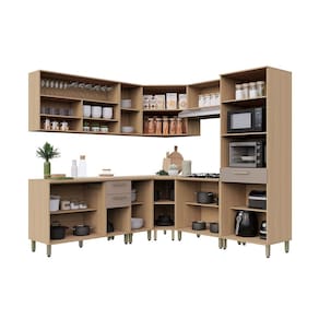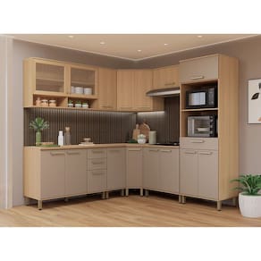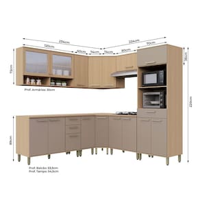 Ambiente composto por: -A x L x P- - 1 Armario Aereo 2 Portas Vidro Canelado com Nicho Inferior 120cm Duna Luciane Moveis -72 x 120 x 30- - 1 Armario Aereo 1 Porta 40cm Duna Luciane Moveis -72 x 40 x 30- - 1 Armario Aereo Canto Diagonal 2 Portas 74cm Duna Luciane Moveis -72 x 74 x 74- - 1 Armario Aereo Para Geladeira 1 Porta Basculante 80cm Duna Luciane Moveis -36 x 80 x 30- - 1 Balcao de Cozinha para Pia 3 Portas e 2 Gavetas Sem Tampo 120cm Duna Luciane Moveis -86,5 x 120 x 53,5- - 1 Tampo para Balcao 120cm Duna Luciane Moveis -2,5 x 120 x 54,5- - 1 Balcao de Cozinha 1 Porta Com Tampo 40cm Duna Luciane Moveis -89 x 40 x 54,5- - 1 Balcao de Cozinha Diagonal 1 Porta Com Tampo 74cm Duna Luciane Moveis -89 x 74 x 74- - 1 Balcao de Cozinha 2 Portas Com Tampo 80cm Duna Luciane Moveis-89 x 80 x 54,5- - 1 Paneleiro 3 Portas com Espaco para Micro-ondas 70cm Duna Luciane Moveis-220 x 70 x 53,5-