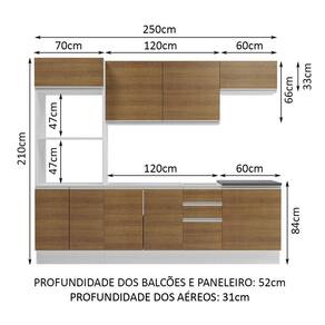 - 52 Cm de profundidade nos balcões e no paneleiro e 31 cm nos aéreos