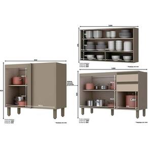 Cozinha Completa Connect 12 Peças (5 Armários + 3 Balcões + 1 Paneleiro + 3 Complementos) C12p02 Duna/cristal - Henn