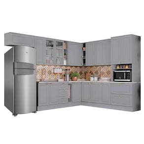 Kit De Cozinha Completa 16 Peças Americana 1 (6aéreos+5balcões+1paneleiro+4complementos) C5p38 Cinza - Henn