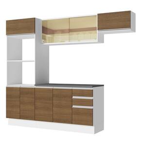 Para completar, os módulos são avulsos, o que permite a montagem conforme a necessidade do ambiente. Além disso, o balcão acompanha tampo, que pode ser removido para colocação de pia com espaço de 120 x 52 cm.