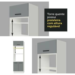 O acabamento da estrutura é branco e o das portas e frentes é cinza. É feito em Pintura Poliéster ecológica com sete camadas, que destaca a tonalidade e protege o móvel.