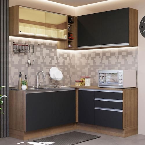 Esta Cozinha de Canto da linha Glamy da Madesa tem como grandes destaques o design moderno, o acabamento de alto padrão e o amplo espaço disponível.