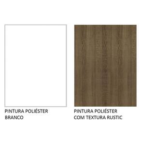 O acabamento da estrutura é branco fosco e as portas e frentes são em amadeirado Rustic. É feito em Pintura Poliéster ecológica de alta resistência, que oferece proteção contra os efeitos da água e do calor.