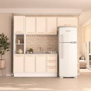 A Cozinha Amara 4 Peças da Politorno Móveis é ideal para quem busca um ambiente organizado e moderno. Conta com um balcão com 3 gavetas e 2 portas, um paneleiro com 2 portas, além de 3 armários aéreos e 1 basculante, oferecendo amplo espaço para armazenamento. Com 224,5 cm de altura, 240 cm de largura e 52 cm de profundidade, otimiza o espaço disponível. A pintura UV garante resistência, e as gavetas com corrediças telescópicas proporcionam deslizamento suave. Observação: vem sem tampo, permitindo personalização. Com materiais de qualidade e ótimo custo-benefício, é uma escolha sofisticada e funcional.