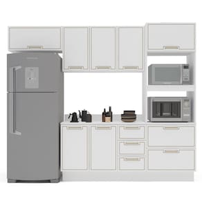 Modular : Não Peso (kg) : 131.64 Garantia : 06 Meses Altura (cm) : 224.5 Acabamento : Pintura UV Largura (cm) : 270 Possui Pés : Rodapé Possui Vidro : Não Possui Portas : Sim Tipo de Porta : Misto (Bater e Basculante) Altura dos Pés : 15 Pés Reguláveis : Sim Possui Gavetas : Sim Possui Rodízio : Não Suporta Até (kg) : 30 Acompanha Tampo : Sim Profundidade (cm) : 52 Escala de Brilho : Semi-Fosco Gaveta com Chave : Não Material dos Pés : Plástico Serviço Montagem : 114259443 Material da Porta : MDF/MDP Material do Tampo : MDF/MDP Origem do Produto : Nacional Acabamento dos Pés : Pintura Ambiente Principal : Cozinha Balcão Suporta Pia : Sim Material da Gaveta : MDF/MDP Material Principal : MDF/MDP Possui Prateleiras : Sim Acabamento da Porta : Finish Foil Quantidade de Peças : 4 Sapatas Niveladoras : Sim Acabamento da Gaveta : Finish Foil Balcão Acompanha Pia : Não Material da Prateleira : MDF/MDP Peso Máximo por Gaveta : 5 Acabamento da Prateleira : Finish Foil Tipo de Puxador da Porta : Externo Escala de Brilho da Porta : Semi-Fosco Tipo de Puxador da Gaveta : Externo Escala de Brilho da Gaveta : Semi-Fosco Peso Máximo por Prateleira : 3 Tipo de Armário de Cozinha : Cozinha Compacta Possui Recorte para Cooktop : Não Tipo de Corrediça da Gaveta : Metálica Telescópica Material do Puxador da Porta : Alumínio Material do Puxador da Gaveta : Alumínio Escala de Brilho da Prateleira : Semi-Fosco Medida de Cada Item (A x L x P) (novo) : Balcão: 92,5x120x52cm; Aéreo 66x120x30,5; Basculante 36x80x30,5; Torre Quente 224,5x70x52 Material da Dobradiça/Corrediça da Porta : Alumínio Marca : Politorno Cor Interna : Branco Cor : Branco Cor do Produto : Branco Itens Inclusos : 1 Cozinha, Kit de Ferragens, Manual de Montagem e Termo de Garantia Cor Predominante : Branco Linha ou Coleção : Amara Quantidade de Prateleiras : 03 Prateleiras Quantidade de Portas : 8 Portas Quantidade de Gavetas : 04 Gavetas Quantidade do Produto : 4