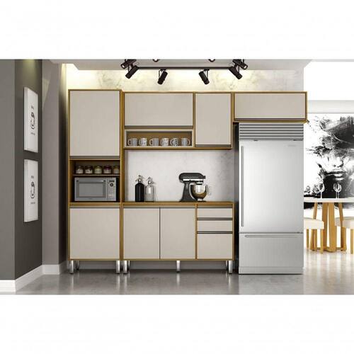 Cozinha Completa 4 Peças 9 Portas - Eduarda-Cinamomo/Off White - CHF Móveis