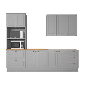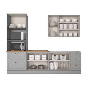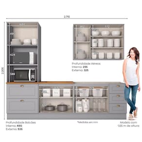 Composicao do Kit (AxLxP): 1 Torre Quente 02 Fornos 220,5 x 71,5 x 53,5 Cm; 1 Aereo 03 Portas 83 x 120 x 32,5 Cm; 1 Balcao 02 Portas 82 x 80 x 51 Cm; 1 Balcao Pia 03 Portas e 02 Gavetas 82 x 120 x 51 Cm; 1 Tampo p/Cooktop 2,5 x 80 x 53,5 Cm;